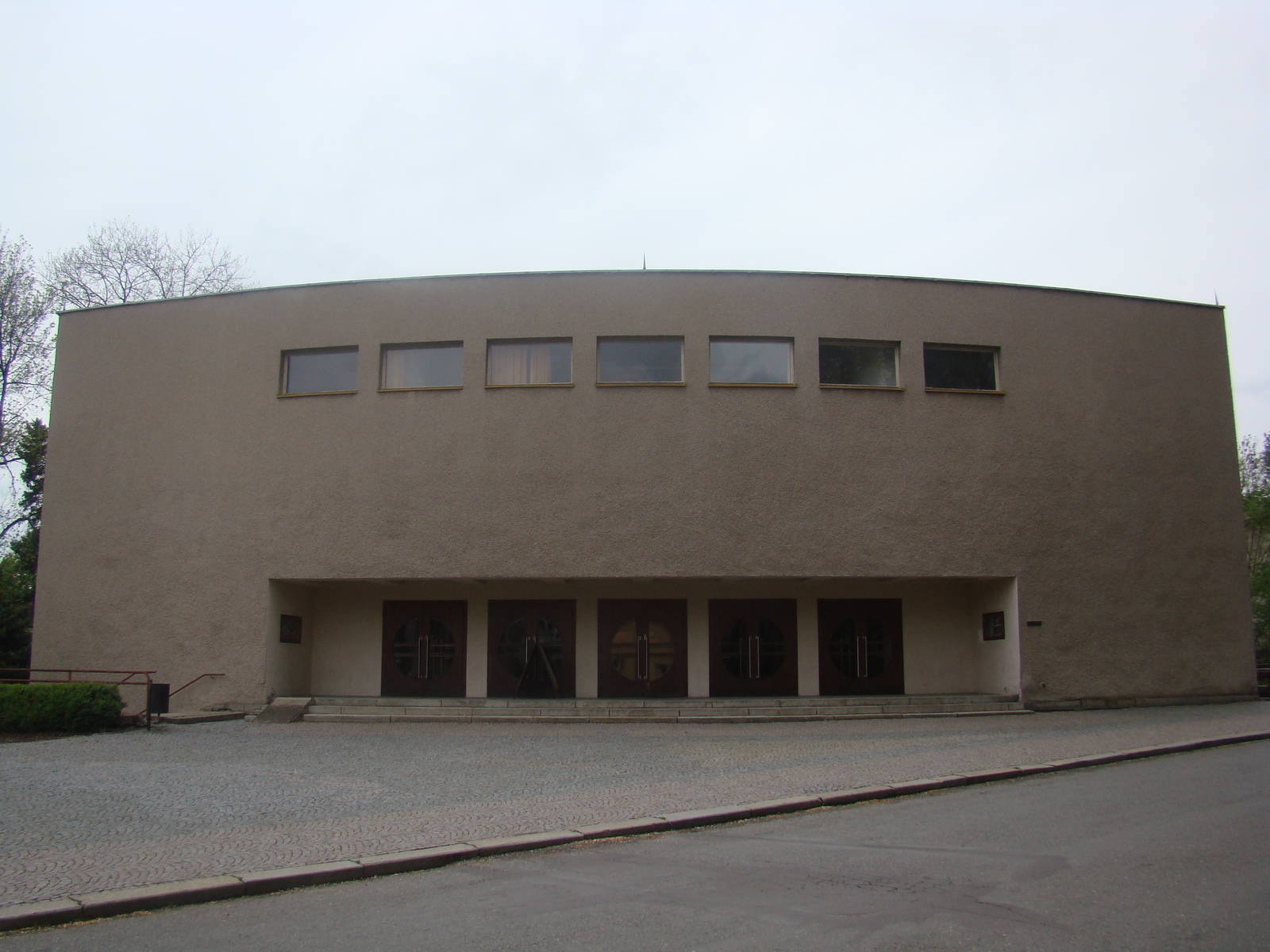 Kónický tvar jeviště proniká v exteriéru do pravoúhlého kubusu prolomeného po stranách terasami a vytváří tak dynamický prvek blízký německé expresionistické architektuře. Na zužující se kónické hlediště navazuje půlkruhová převýšená hmota jeviště. Podobně jako v prvním projektu divadla autor pracoval s poměrně uzavřenými hmotami, na rozdíl od projektu pro Teherán ale stěny neodhmotnil sklem. Využil kontrasty a do celkové kompozice zdařile zapojil hru světel a stínů. Budovu velice citlivě umístil do kontextu okolní architektury, neřešil pouze ve své době ještě ne tak naléhavou otázku příjezdu automobilů a jejich parkování. Budova je sice velice dobře přístupná z blízké komunikace a po rekonstrukci v roce 1978 byl zvětšen prostor za divadlem pro příjezd techniky a přepravu dekorací, větší část kolem divadla však zabírá park.