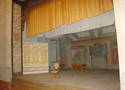 Na zadní stěně jeviště jsou upevněny řady dřevěných háků, do kterých byly ukládány nepoužívané prospekty.