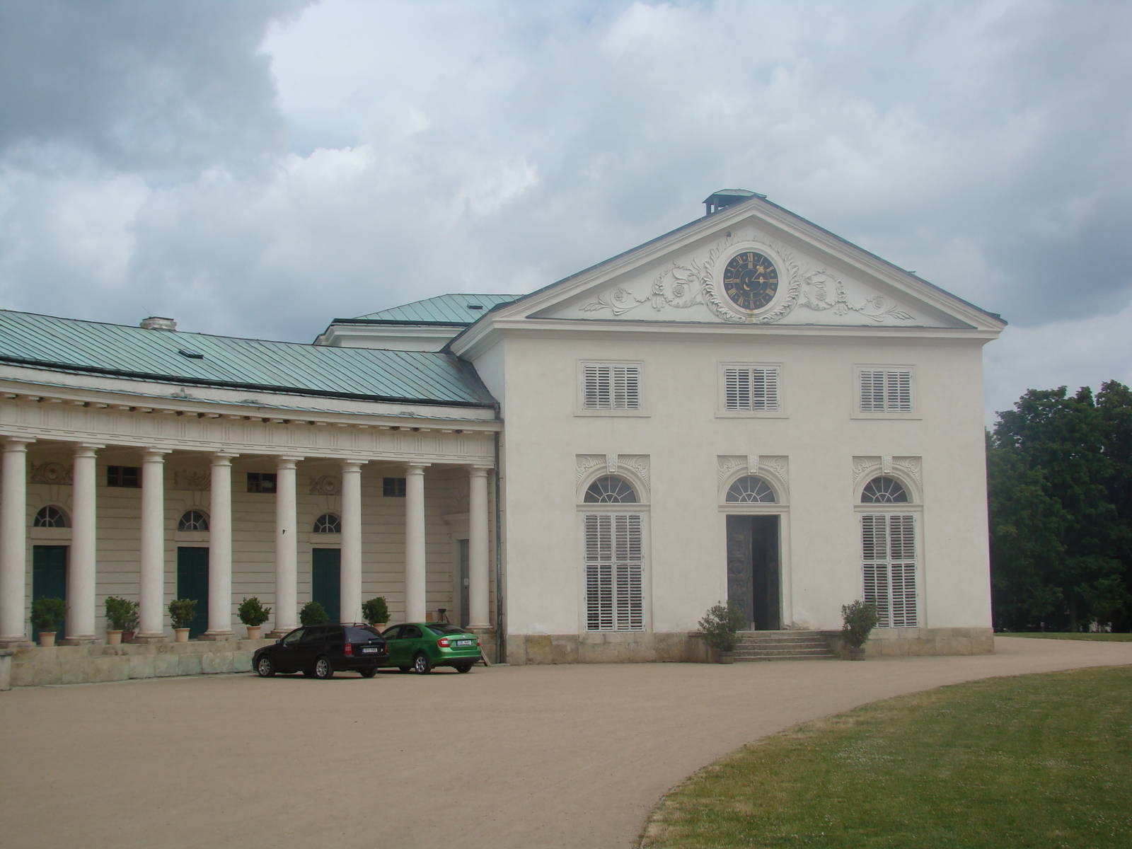 Zámek Kačinu, jednu z nejvýznamnějších klasicistních architektur na našem území, dal na svém novodvorském panství postavit hrabě Jan Rudolf Chotek (1749–1824). Projekt zámku vypracoval v roce 1796 drážďanský architekt Christian Fridrich Schuricht (1753–1832). Úpravy místa a budoucího zámeckého parku probíhaly už od 90. let 18. století, základní kámen zámecké budovy byl položen v roce 1806. Místo hlavního stavitele převzal po dvou letech, kdy stavbu vedl Jiří Fischer (1768–1828), architekt Joseph Philip Jöndl (1782–1870). Ten také během následujících let v detailech upravoval a dokončoval Schurichtův projekt; drobné změny v něm ostatně prováděl i sám stavebník. V závěru stavby vystřídal Jöndla Anton Arche (1793–1851). Stavba byla v hrubých rysech dokončena v roce 1822 a v srpnu následujícího roku se Chotkové na Kačinu přestěhovali ze svého dosavadního sídla v nedalekých Nových Dvorech.