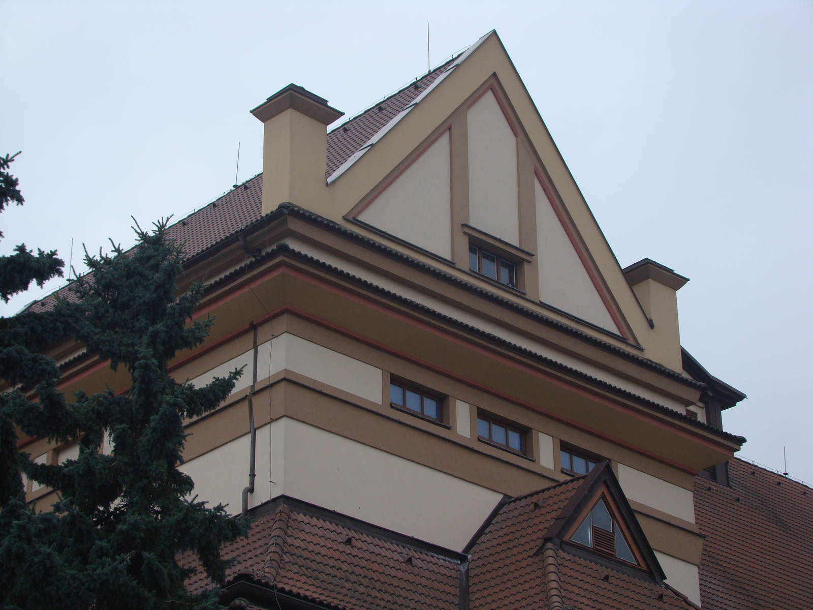 Výtvarně pozoruhodná je členitá střešní partie budovy, kde strmou sedlovou střechu doplňuje dvojice nízkých větracích altánků a četné pagodovité stříšky vikýřů – snad se tu projevil vliv orientalizující záliby art déca na tvorbu obou pražských projektantů Tylova domu v raných dvacátých letech.