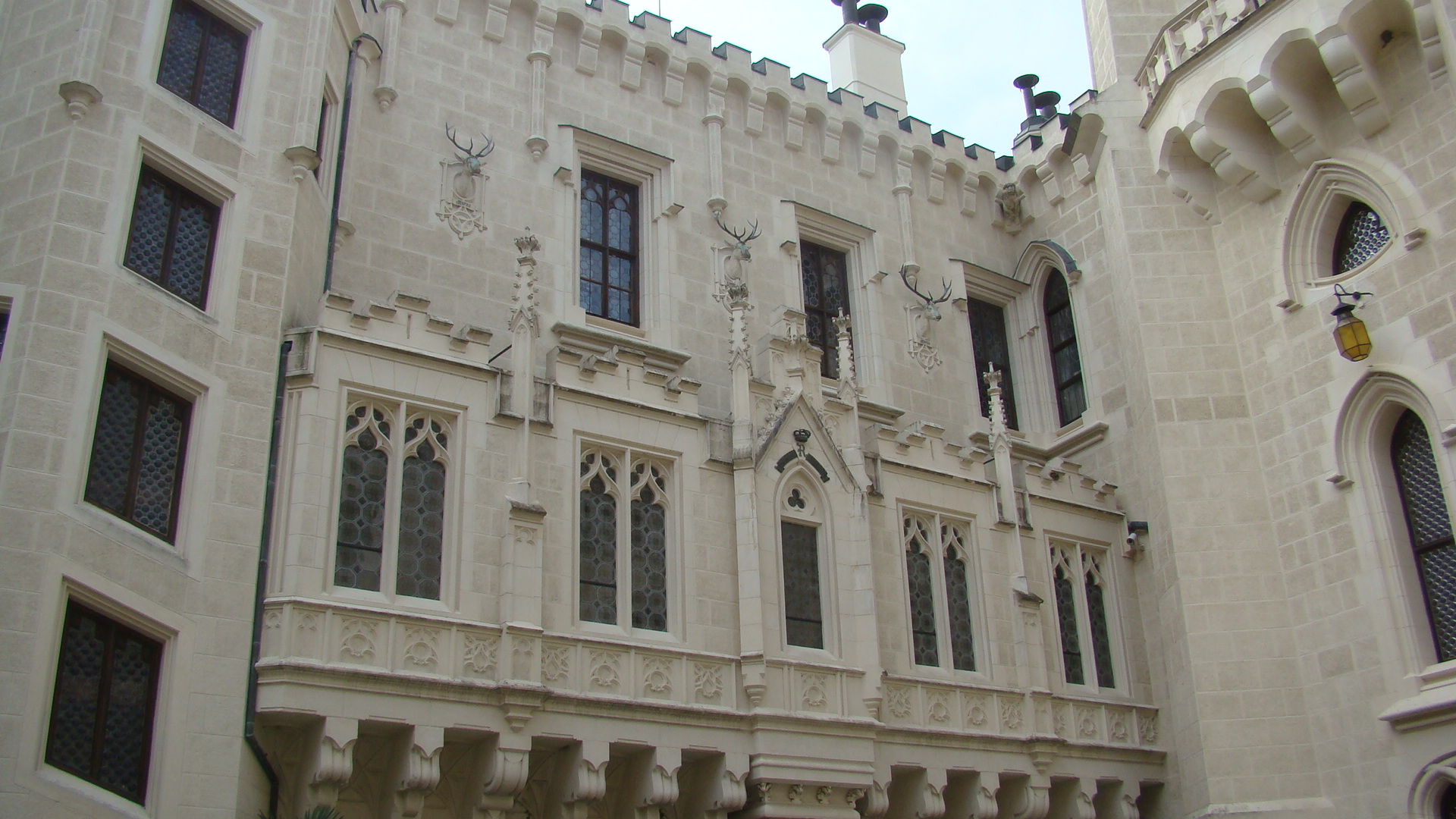 The new theatre with the auditorium which has been preserved up to this day was built during the reconstruction of the castle in the Neo-Gothic style and is located on the first floor of the north-east wing of the castle between the chapel and the library. The process of reconstruction is documented mainly in the annual plans for the following year which show that the deadlines were often not met due to the lack of finance. The progress in building the theatre can therefore be assessed from these plans only in general. The theatre construction, its equipment, and the simultaneous reconstruction of the adjacent rooms lasted several years. The theatre is featured in the first Beer’s reconstruction plans dated in 1840s, however, it is not mentioned in the records of the actual construction until 1851. The previous theatre hall is mentioned in the records long before that – in July 1846, when the wall of the vestry, sacrarium, and a part of the old theatre was to be pulled down in connection with some reconstruction work in the chapel. Minutes from the meeting on the reconstruction dated in March 1851 state that the theatre should be rounded by using vaulted bricks; also, the necessity to break through the doors, lay the flooring, and deliver drawings to the carpenters is pointed out. The 1853 plan mentions the request for a drawing or an assignment for building a theatre box. (this point was later postponed to the following year). The 1855 plan includes the completion of the theatre and the adjacent halls with a cost estimate of 1 019 gold coins. Reports from the following years indicate that the theatre was not finished within that year. The budget for 1857 prepared by the painter Gläser, who also worked on other rooms in the castle at the beginning of 1850s, states that the theatre should have floral decoration which would cost 500 gold coins. In the 1858 preliminary plan, 308 gold coins were made available for establishing the theatre (however, the theatre is not mentioned in the list of work done signed by Deworetzky in October of that year). The 1859 budget for the theatre was 1 080 gold coins, including 600 gold coins for five sceneries. It is also apparent from the archive documents that the first performance in what was then most probably a barely equipped theatre took place as early as in November 1856. Another performance is documented in October 1858 – Nestroy’s farce play Die schlimmen Buben in der Schule. More performances took place in the following years in Hluboká – always during the autumn hunting season when the famous Hunter’s Ball took place as well.