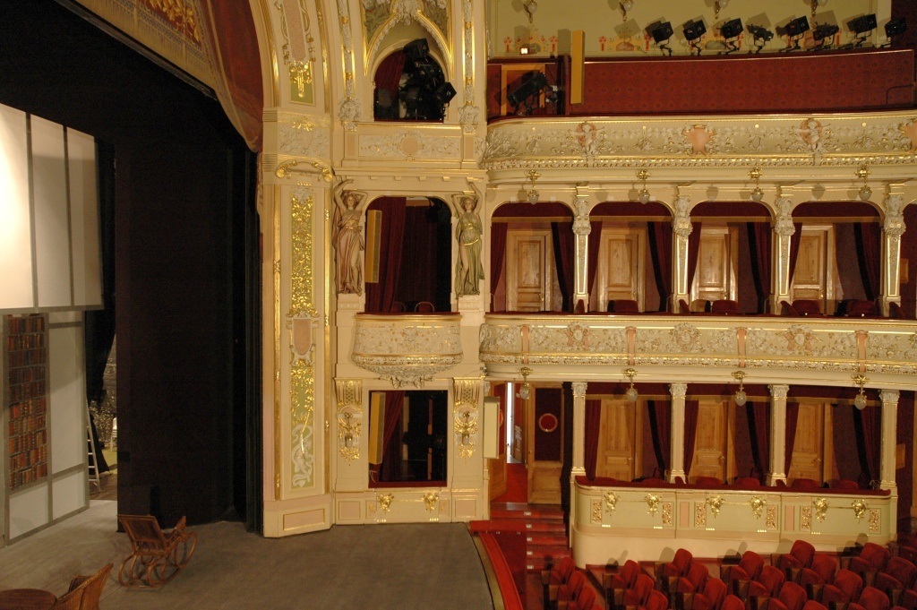 Balšánek submitted theatre designs, adjusted in such a manner that the realization would not  exceed   authorized financial amount (he moderately reduced the spectators’ capacity), to the municipal council in March of 1898. In addition to architect Balšánek,  the construction proceeded with participation of Skoda Works engineers, who designed an iron structure, and court theatre supervisor Brettscheider, who is the author of the stage machinery design.  A building permit  was issued on 3rd  September of 1902 and the ceremonial opening took place on 27th  September with the play Libuše by Bedřich Smetana having been introduced by a poetical speech by Adolf Heyduk.