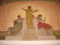 The Piran theatre building is an interesting example of sufficiently ambitious provincial architecture on the margin of the Habsburg monarchy from the period when the Secession forms began to replace historical ones. Both styles are interwoven in the building’s design without any sharp demarcation lines. The building consists of a number of smaller units, designed on rectangular ground plans. The central part is occupied by the auditorium, in front of which is a somewhat lower section, whilst at the back is the stage. On the southern, sea-facing side, there are two smaller units containing a café and auxiliary rooms. The building's exterior, particularly its stepped form, hints at the arrangement of the space inside. The main architectural emphasis of the exterior is on the symmetrical main façade. The building has been connected with the sea shore by the addition of a café and a raised terrace. Inside, the largest part of the building is taken by the auditorium, designed as a high-ceilinged longitudinal space on a flat rectangular ground plan with sloping stalls. The auditorium is surrounded by a semi-circular balcony and boxes at the sides. The stage has a large opening with rich stucco decorations. The auditorium ceiling is decorated with eclectic paintings of female figures, representing muses. The stage, which is connected with the auditorium, is a fraction narrower and its relatively small surface area shows that the building was built mainly with the intention of providing the town with a large hall for various social events. Thus it is understandable that during the 20th century relatively few theatre performances were staged there.
